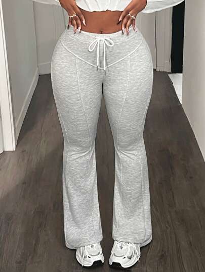 BamGleam 休闲抽绳腰部修身喇叭下摆运动裤 - 白色 - 查看 7