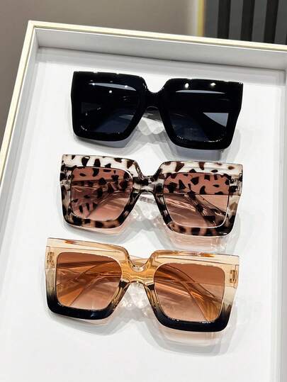 1/3件套复古方形超大豹纹波西米亚风塑料眼镜,经典时尚装饰,适合户外旅行和海滩活动 - 彩色 - 查看 1