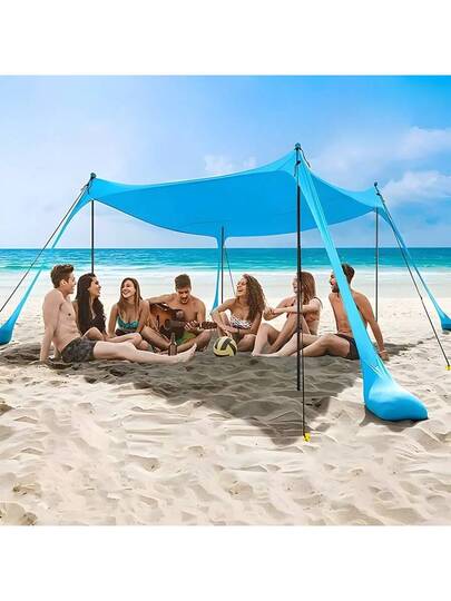沙滩帐篷,露营遮阳棚 UPF50+,配有 4 个沙袋、地钉和稳定杆,户外遮阳沙滩篷,适合露营旅行、钓鱼、后院娱乐或野餐 - 彩色 - 查看 8