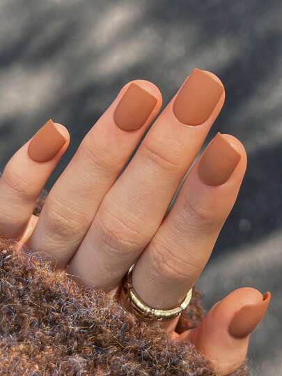 用24入短方形霧面固體駝色假指甲,打造您的日常和節日造型 - 彩色 - 查看 1