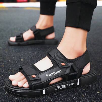 畅销男士渔夫凉鞋,夏季防滑耐磨厚底纯色软弹力拖鞋,露跟露趾沙滩凉鞋 - 黑色 - 查看 1