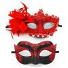 2个蕾丝情侣面具,化装舞会面具,新娘装扮眼罩,威尼斯派对面具,适合情人节、圣诞节、新年派对、服装派对(含人造羽毛)