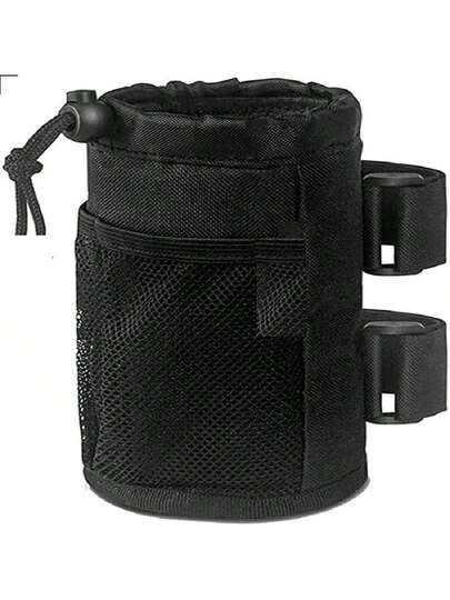 自行車杯架水壺袋牛津布保溫袋,適用於嬰兒車輪椅,帶有網袋儲物袋 - 黑色 - 查看 1