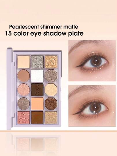 Biya 15色眼影盤,珠光珠光啞光眼妝託盤眼影袖珍持久眼妝