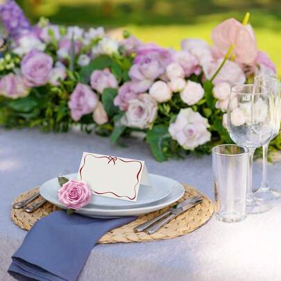 黑色蝴蝶结波浪边桌卡,空白姓名卡,适用于宴会、婚礼、婴儿派对、生日派对和活动座位卡套装 - 紅色 - 查看 7