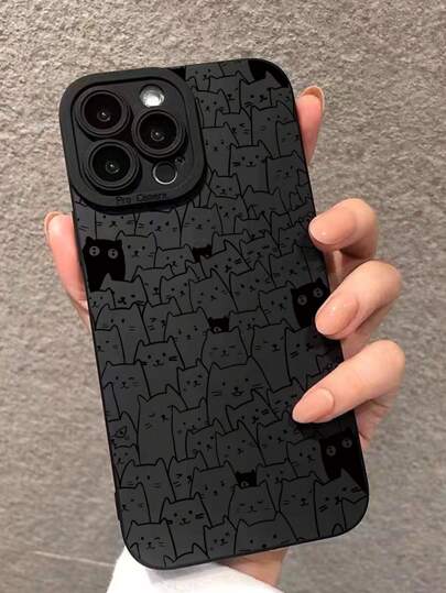 黑色卡通貓圖案防震手機外殼適用於iphone,HUAWEI,三星,Xiaomi - 彩色 - 查看 1
