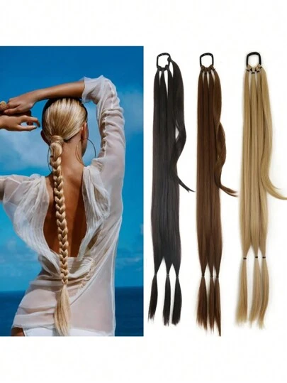 长款编织马尾接发带发带直绕发接发马尾自然柔软合成假发女士日常佩戴 26 英寸 30 英寸 34 英寸 1 件浅棕色 - Light Brown - 查看 1