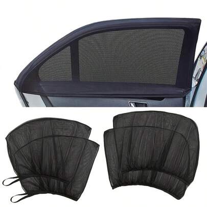 黑色网状汽车车窗遮阳帘,材质耐用,安装拆卸方便,适用于前后车窗、房车,仅供郊游/露营停车使用。