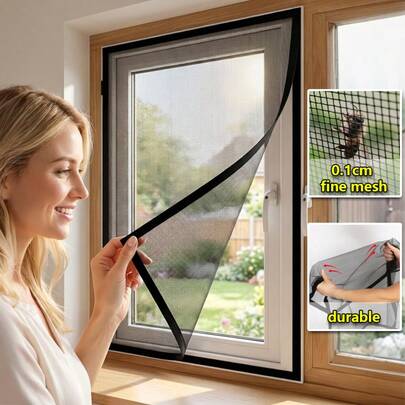 黑色窗纱套装,DIY网纱窗,带自粘钩环条,透气细网,防蚊虫,适用于多种窗户尺寸 - Black Screen - 查看 6
