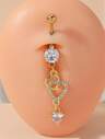 1 件不锈钢肚脐环,防过敏可爱粉色 CZ 心形扣,女士肚脐穿孔首饰