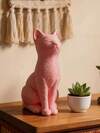 优雅的北欧流线型猫咪摆件,心形耳朵和毛绒质感,站立姿势