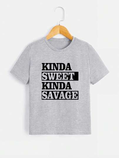 男童圓領休閒T卹,字母印花款 - 灰色 - 查看 1