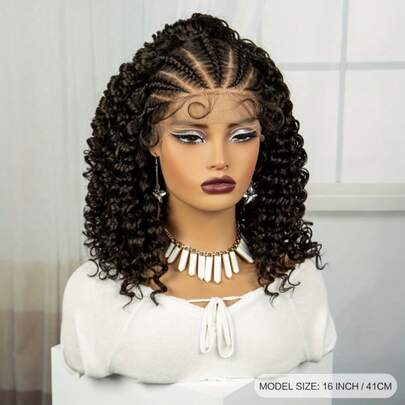 13x4蕾丝前假发,编织真人发假发,编织波波头假发,女士非洲卷发真人发假发,预拔毛透明蕾丝 - Natural Black - 查看 9