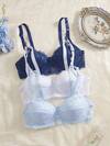 DesireSculpt 3件套女士极简钢圈文胸,性感蕾丝浪漫法式风格内衣