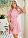 Simplee 女士优雅浪漫水溶蕾丝印花立领短袖连衣裙,适合派对、婚礼宾客、生日、毕业等场合,粉色系夏季度假必备单品