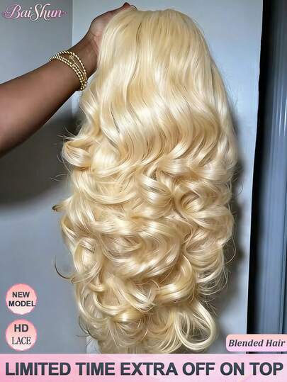 巴西原生蕾丝前假发,波浪卷发,13x4高清蕾丝前假发,200%密度,预先拔毛,带婴儿发,无胶假发,真人混纺假发,#613金色