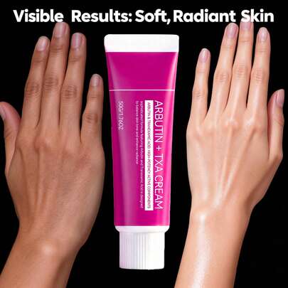 亮白面部及身体乳霜,强效亮肤霜,蕴含熊果提取物、氨甲环酸、烟酰胺和谷胱甘肽,有效淡化雀斑、瑕疵和色素沉着,温和保湿,不刺激肌肤。