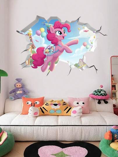 MY LITTLE PONY 破窗小马宝莉系列卧室房间3D动画卡通自粘防水海报贴纸装饰,涂鸦装饰破墙,卡通电影和动漫自粘贴纸可移除