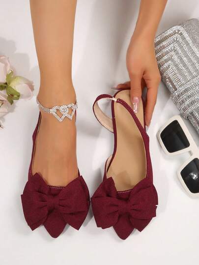 酒红色平底尖头女鞋,侧面镂空,蝴蝶结装饰,优雅平底乐福鞋,镂空时尚休闲鞋,四季皆宜