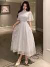 DAZY 露肩纯色褶皱侧网纱覆盖返校节礼服舞会礼服优雅太阳裙婚礼女士连衣裙