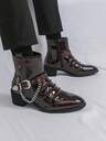男士粗跟切尔西靴,尖头链条装饰,西部风格靴子,黑色