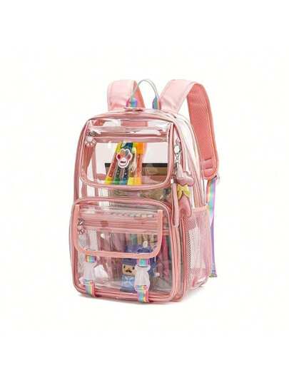 Multi-Functional Oversized PVC Clear Transparent Backpack For School, Campus & Daily Commuting - Stylish Gift-Ready Design With Complimentary Accessories, Perfect Back-To-School Gift (Pink/Purple) - 粉紅色 - 查看 1