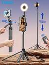 TOKQI 180 厘米/70.87 英寸铝合金自拍杆,带加强型三脚架,多功能蓝牙遥控手机支架,带补光灯,可伸缩便携式手机三脚架,兼容 iOS Android 智能手机,适用于暑假、旅行、户外活动、直播三脚架