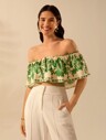 CAJUNI 女士休闲度假热带吊带露肩无袖蝴蝶结鹦鹉花卉印花长款连体裤,约会连体裤,休闲优雅连体裤
