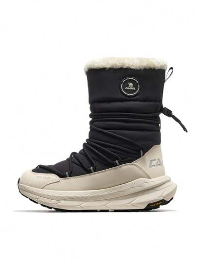 CAMEL CROWN 女士休闲雪地靴冬季户外雪地靴高帮女鞋防滑防水加厚保暖棉鞋 - 米白/黑 - 查看 1