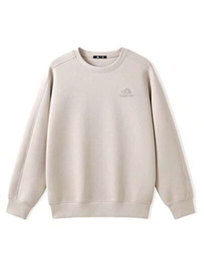 CAMEL CROWN 男士圆领套头衫纯色长袖打底衫上衣 - 淺卡其 - 查看 1