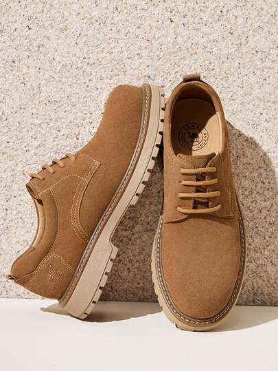 CAMEL CROWN 男鞋秋季新款经典复古百搭低帮工作鞋休闲鞋男士休闲皮鞋 - 土黃 - 查看 1