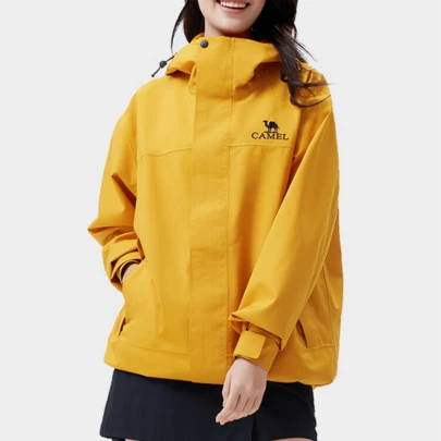 CAMEL CROWN 女士防水防风硬壳外套,单层设计,是户外活动和登山的理想之选 - 穀子黃 - 查看 1