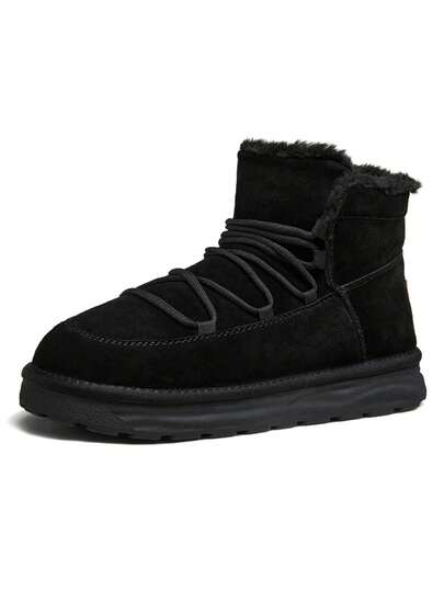 CAMEL CROWN 雪地靴女冬季加绒加厚保暖防滑棉鞋中筒短靴 - 黑色 - 查看 1