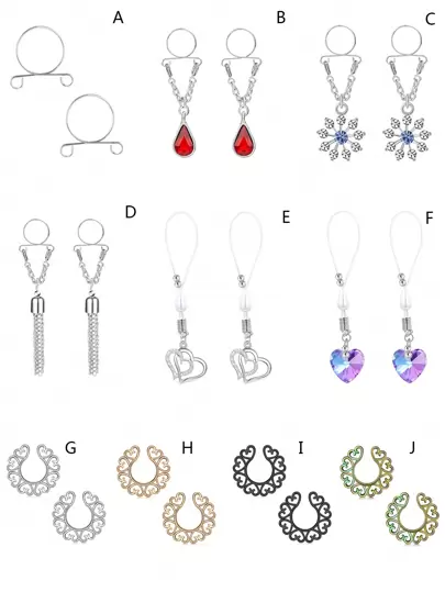 CIZME 2件套 假乳环 不锈钢无穿孔乳环 夹式乳环 仿身体穿刺饰品 男女通用 - 彩色 - 查看 9