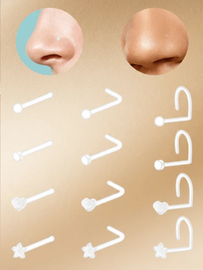 CIZME 4个透明鼻钉,18G/20G 星形/心形透明骨质L形鼻环,鼻部穿孔饰品,女士鼻钉 - 無色 - 查看 10