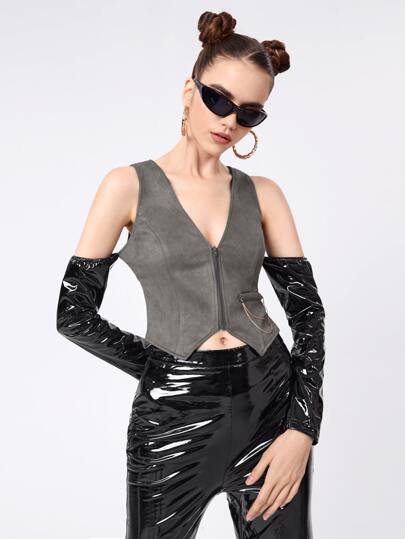 CLOSET EXCLUSIVES 拉鏈開襟不對稱下擺上衣 - 深灰色 - 查看 1
