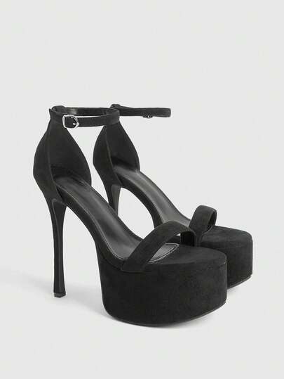 CUCCOO LuxiPop 女士高跟防水厚底凉鞋,单带黑色细高跟,性感夜店装