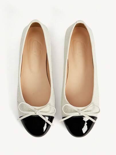 CUCCOO CHICEST 女士春夏舒适易穿鞋,蝴蝶结圆头平底低跟布拼接纯色女式平底鞋,适合日常通勤和约会穿着。