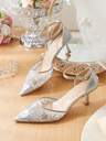 CUCCOO HITCHD 新款春夏奢华水晶水钻镶嵌高跟凉鞋,桃色和裸色,缎面面料,细高跟,女士新年假期派对/婚礼高跟鞋
