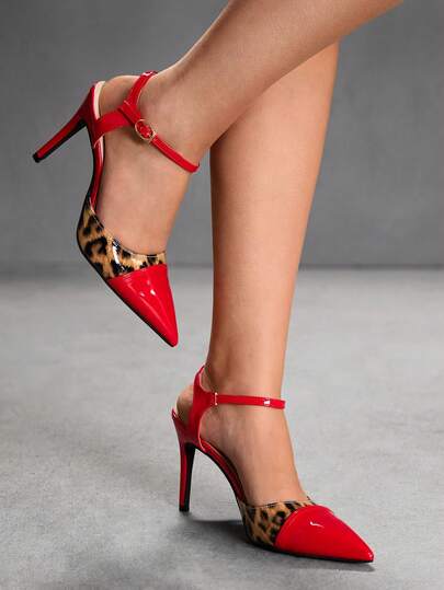 CUCCOO SZL 女士夏季性感尖头高跟豹纹鞋 - 紅色 - 查看 1