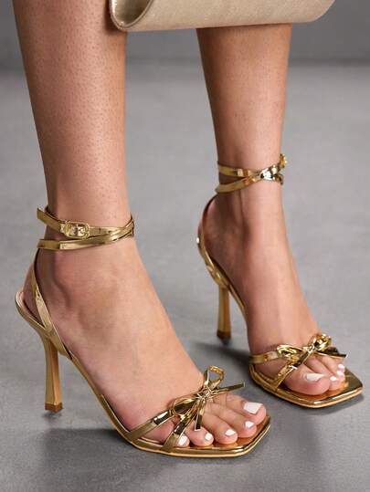 CUCCOO SZL 女士方头水钻踝带凉鞋,圣诞节必备 - 金色 - 查看 9