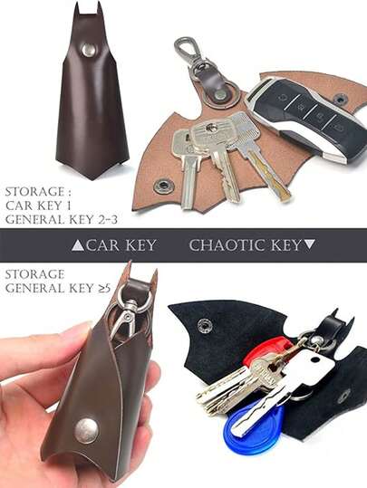 Caillu蝙蝠造型真皮钥匙扣 男女通用汽车钥匙链 时尚个性化钥匙圈 男士迷你钱包 小钱包 - 彩色 - 查看 4