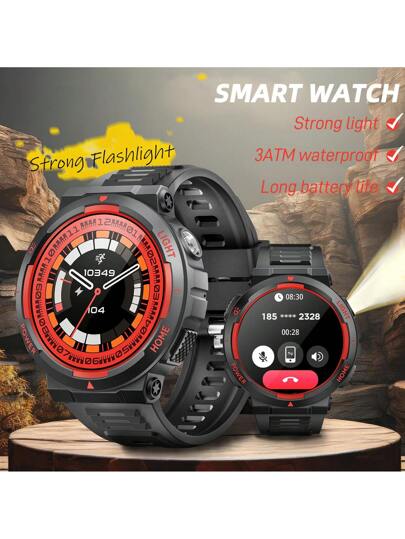EIGIIS Men's Smart Watch With LED Flashlight BT Call 1.53" IPS Screen 400mAh Battery 3ATM Waterproof 100+ Sports Modes Heart Rate Sleep Monitor Remote Control Camera Music Playback Control For IOS Android Phones - 黑紅顏色 - 查看 1