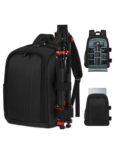 Camera Backpack, Professional Camera Backpack Bag, Waterproof 15.6 Inch Laptop Backpack With Detachable Dividers And Rain Cover - 灰色 - 查看 1