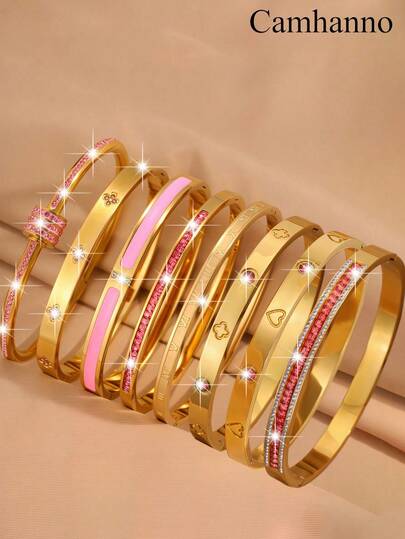 Camhanno 5件套金色首饰套装,时尚简约的不锈钢手镯,适合约会、派对聚会、日常通勤,精致的线条细节和抛光处理,是情人节的别致礼物,现代而优雅的款式,提升您的日常格调。