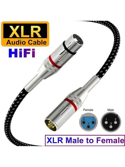 Cannon Cable XLR 线缆麦克风线缆尼龙编织 XLR 公对母重型平衡麦克风线 XLR 线缆适用于前置放大器和扬声器系统 - 銀色 - 查看 1