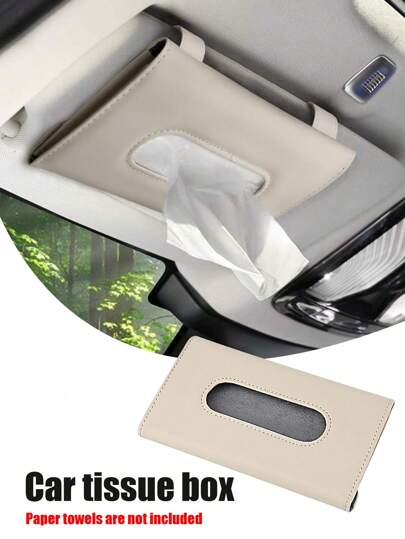 汽车纸巾架 - 汽车纸巾架、汽车餐巾架、汽车餐巾架、汽车遮阳板纸巾分配器、车内皮革纸巾架 - 遮阳板配件。 - 米色 - 查看 1