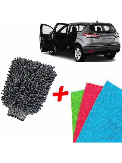 Car Wash Kit Motorcycle Automotive Cleaning Glove +3 Microfiber Cloths