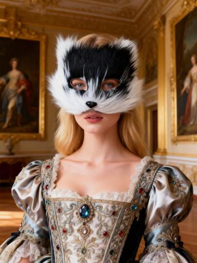 嘉年华长毛狐狸面具,毛绒半脸猫面具,派对和舞会动物装扮面具。完美适用于万圣节、圣诞节、复活节、嘉年华、化装舞会和各种节日场合。 - 彩色 - 查看 6