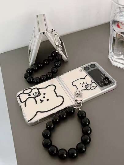 卡通小熊印花透明手機殼附帶串珠掛繩 - 無色 - 查看 1